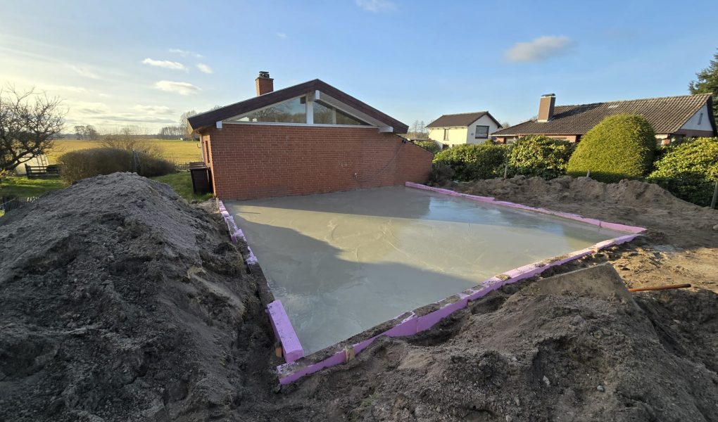 Als sich unser Schwager und meine Schwester entschieden, ein Haus mit 45 m² Wohnfläche zu kaufen, war sofort klar: Wir würden sie bestmöglich unterstützen! Nach einigen Gesprächen und Planungen erwirkten wir eine Baugenehmigung für einen 50 m² Anbau. Doch bereits bei der ersten großen Herausforderung – der Bodenplatte – merkten wir schnell, dass die Kosten ordentlich zu Buche schlagen würden. Angebote lagen zwischen 25.000€ und 40.000€, und viele Bauunternehmen sagten aus Zeitgründen ab.